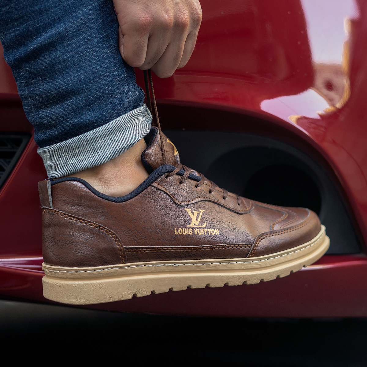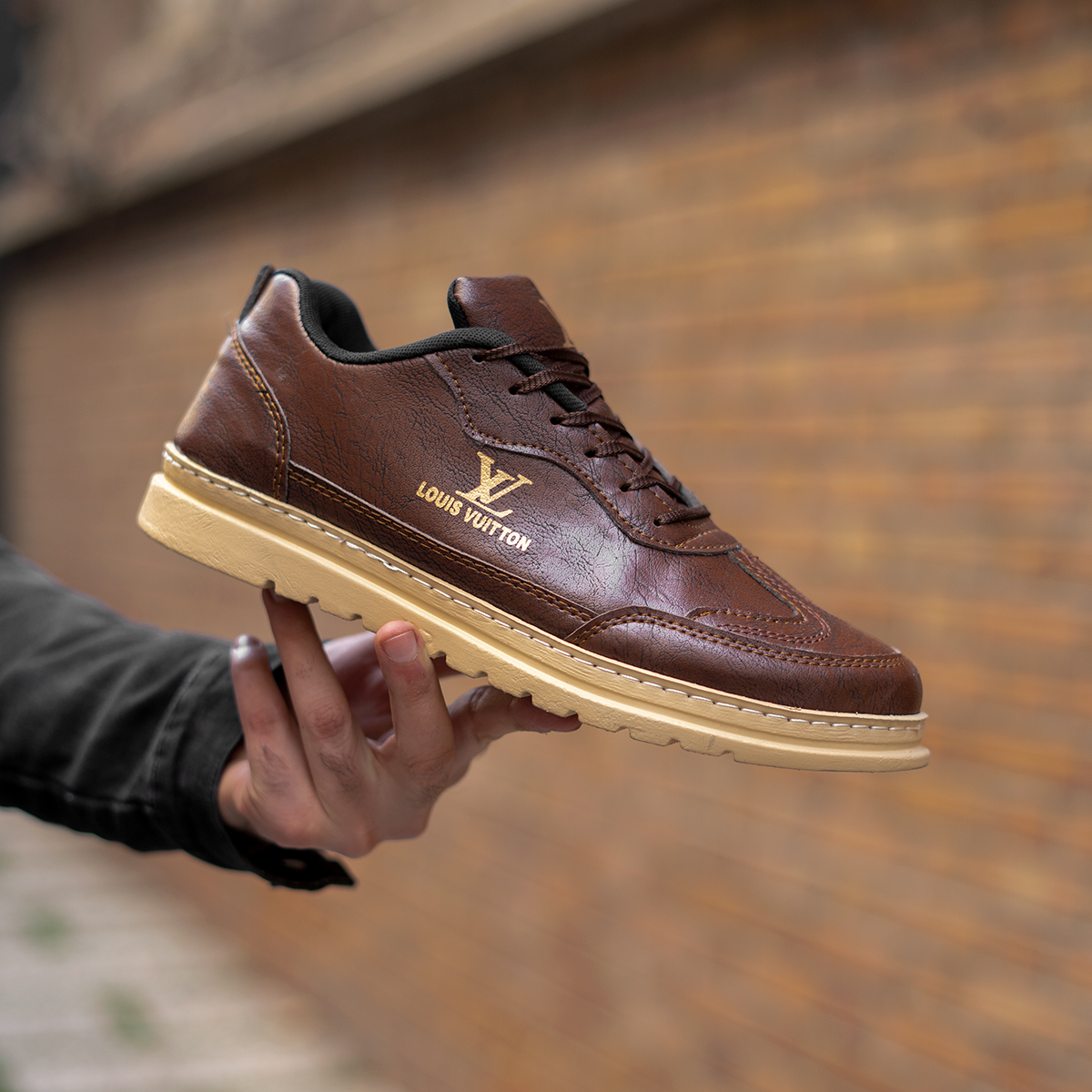 کفش تخت Lv مردانه قهوه ای مدل LOUIS