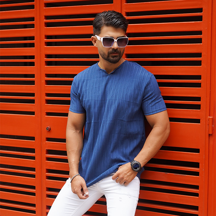 تیشرت مردانه آبی آستین کوتاه مدل Bardia