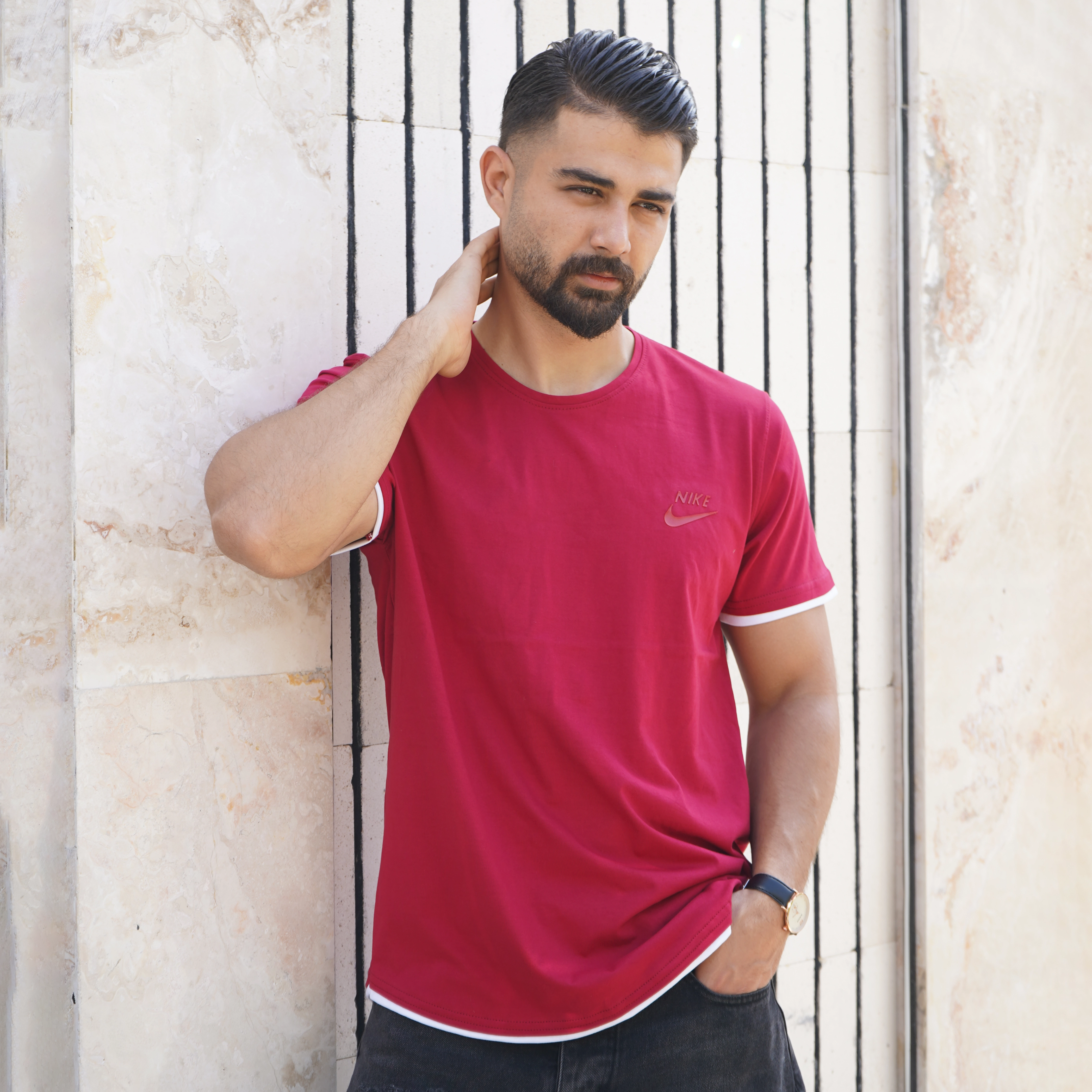 تیشرت یقه گرد قرمز مردانه مدل kamyar